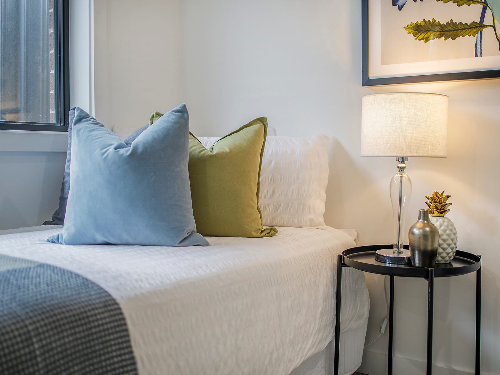 - Stone Kitchen Bench with Waterfall and Glass Splashback