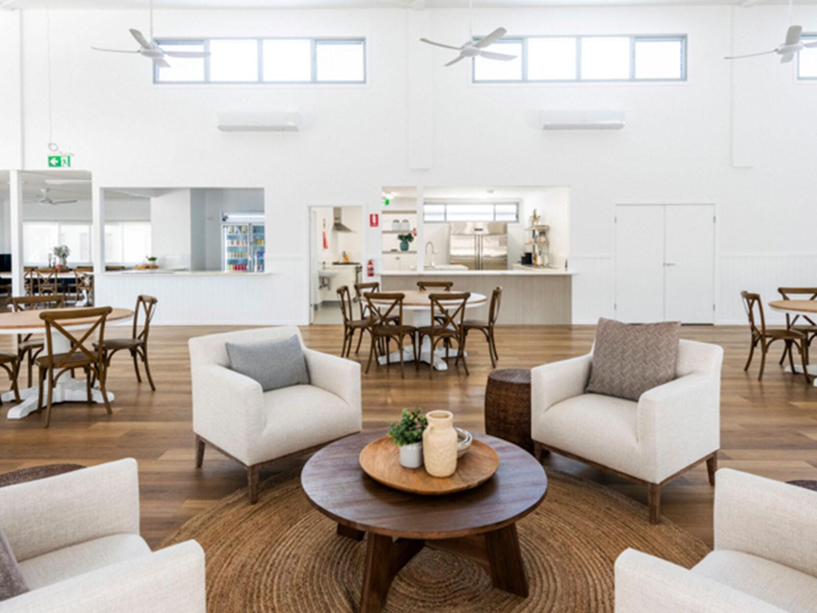 The master bedroom features a walk-in robe and ensuite, and privacy shutters. The spacious open-plan living area flows seamlessly to a modern kitchen with a brand-new electric oven, electric cooktop, and new dishwasher; this is one of the only homes in the village to offer a fully electric kitchen.
