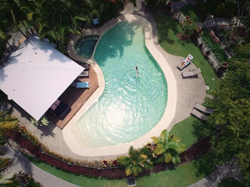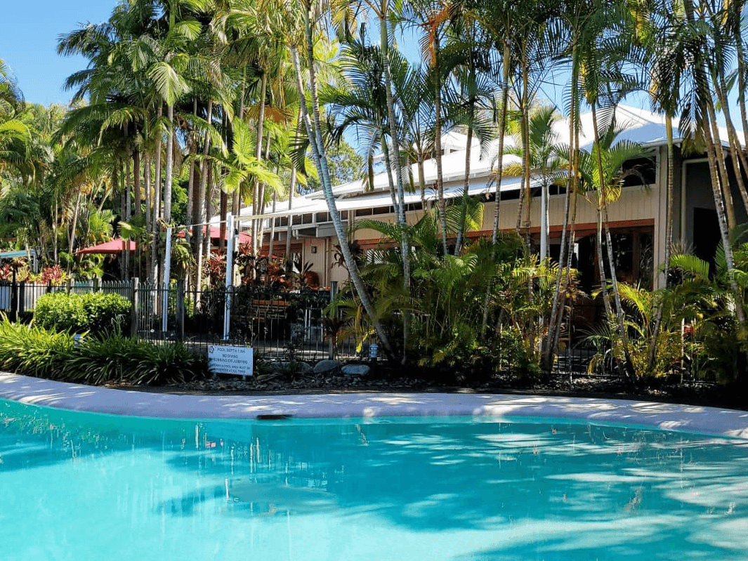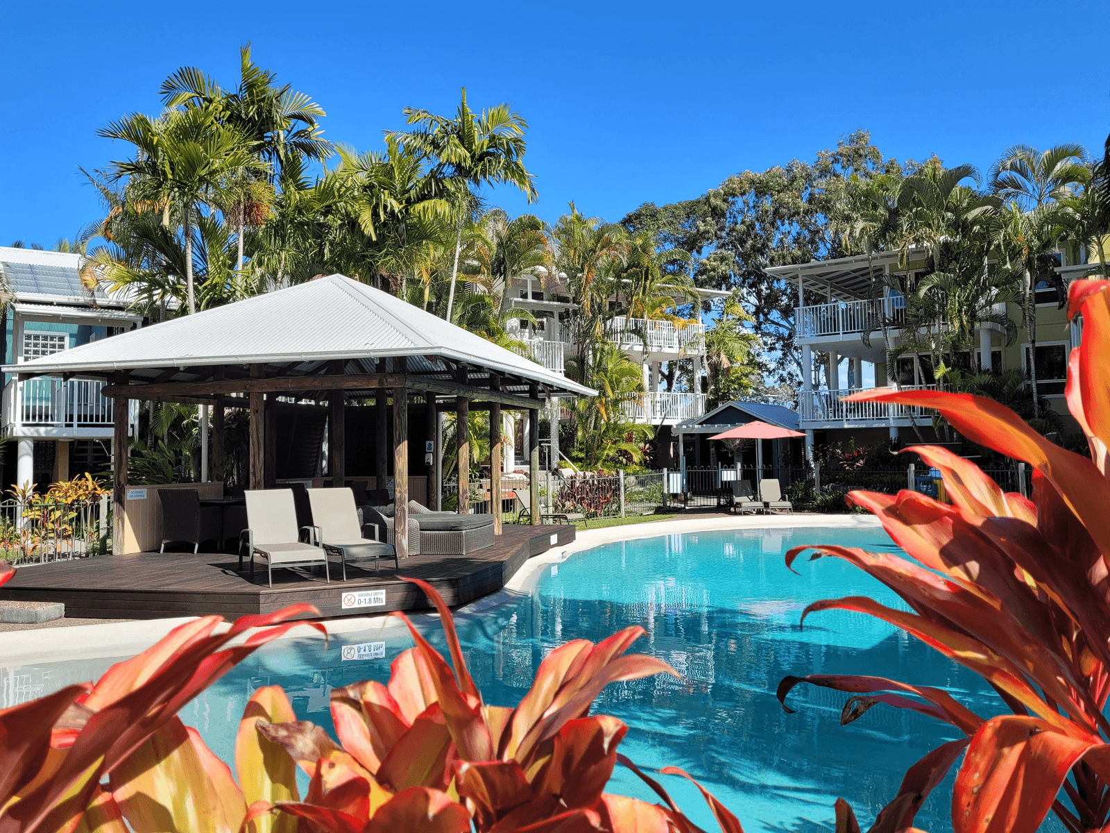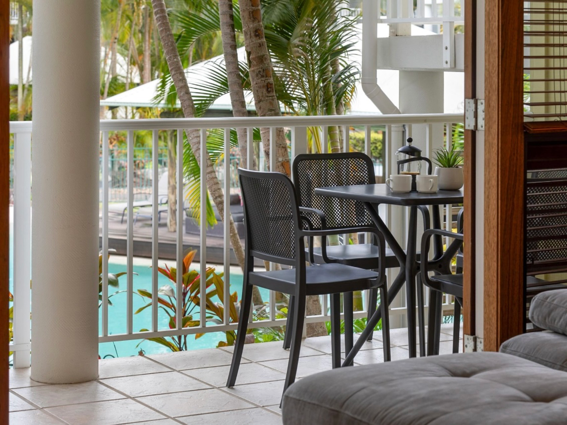 In a highly sought after position overlooking two lagoon-styled pools, lush tropical gardens and the famous local favourite restaurant, Izzy Chai!